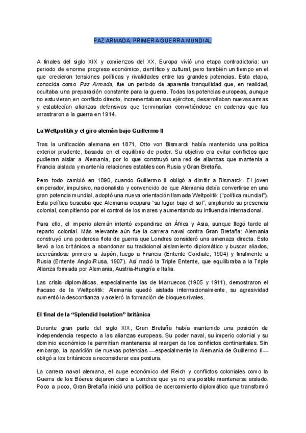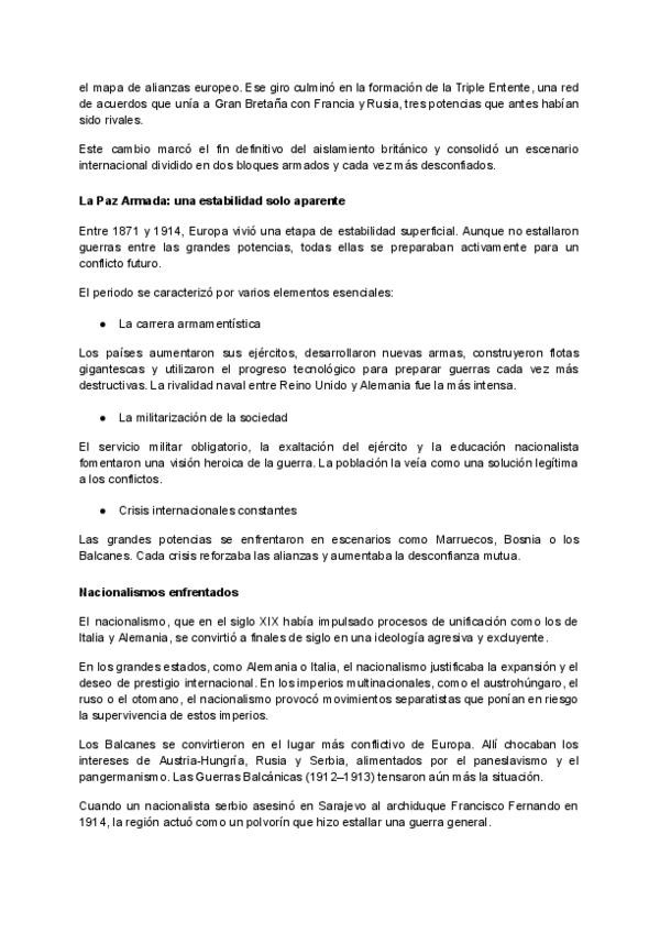 Tema 8 Historia de las RRII Paz Armada, primera Guerra Mundial