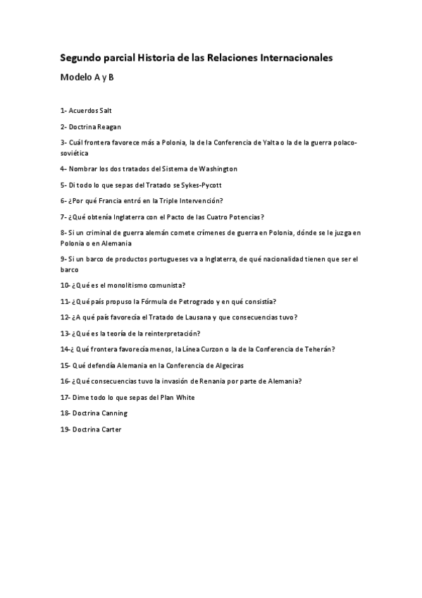 Segundo parcial de historia de las relaciones internacionales con el profesor Leandro, de la URJC, ambos modelos