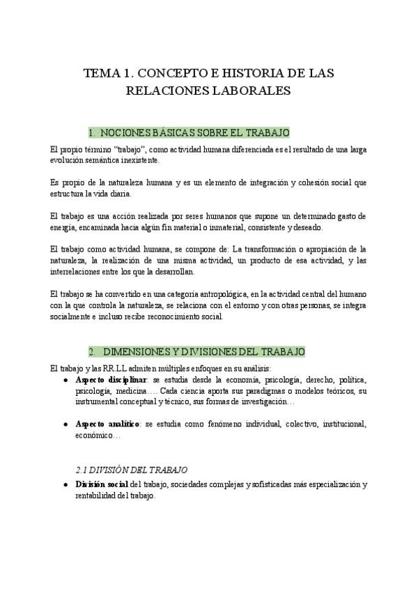 RESUMEN DE TODOS LOS TEMAS DE HISTORIA DE LAS RELACIONES LABORALES, INCLUYE PREGUNTAS Y CONCEPTOS (1º RRHH Y RRLL UPO)