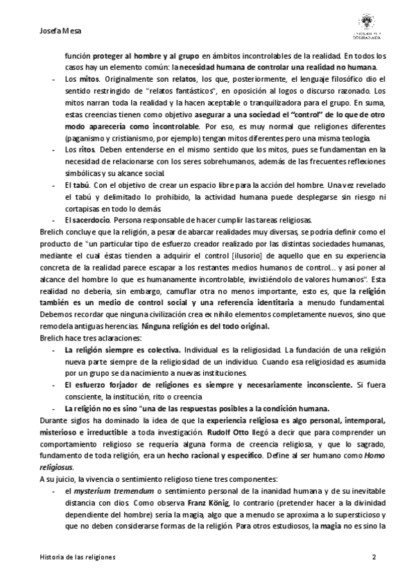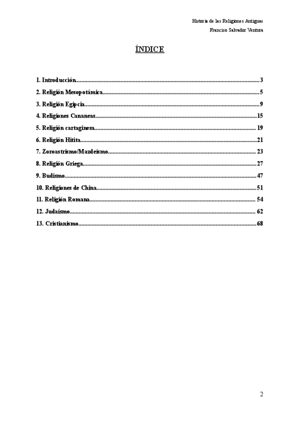 Estos apuntes están realizados en base a las clases del profesor Francisco Salvador Ventura, apoyándome en el manual de Francisco Díez de Velasco "Hombres, ritos, Dioses. Introducción a la Historia de las Religiones".