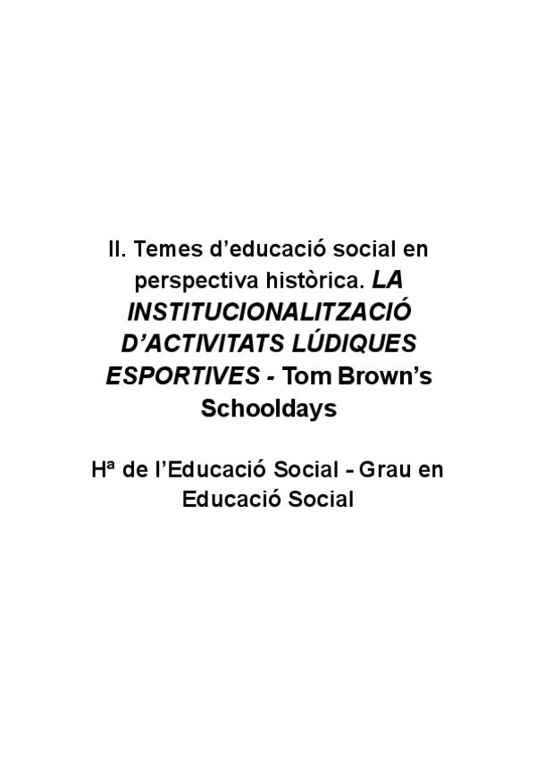 He publicado nuevos apuntes de 1º Història de l'educació social: LA-INSTITUCIONALITZACIO-DACTIVITATS-LUDIQUES-ESPORTIVES-Tom-Browns-Schooldays-II.-Temes-deducacio-social-en-perspectiva-historica.-Ha-de-lEducacio-Social-Grau-en-Educacio-Social.pdf
