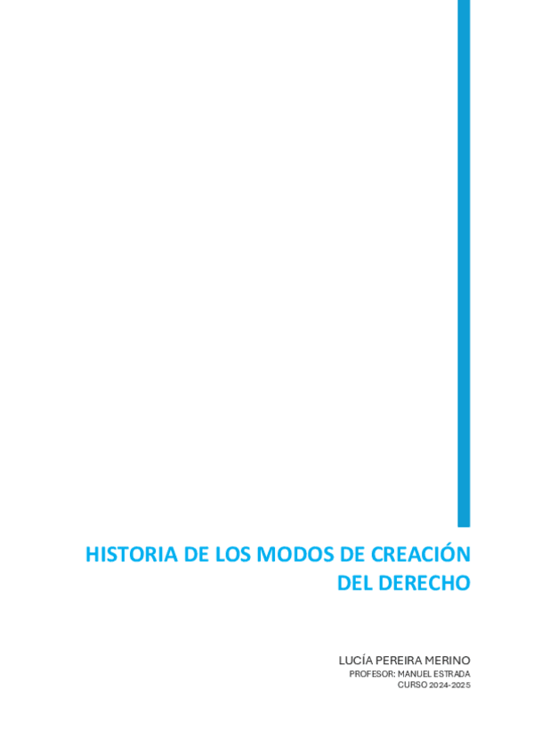 Este pdf contiene todo el temario de la asignatura Historia de los modos de creación del Derecho, clase por clase del profesor Estrada.