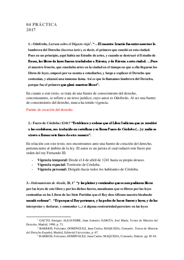 Práctica de la asignatura Historia de los Modos de Creación del Derecho, resuelta y corregida del profesor Manuel Estrada.