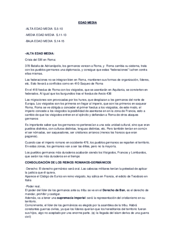 apuntes historia medieval de origenes de europa, alta, media y baja.