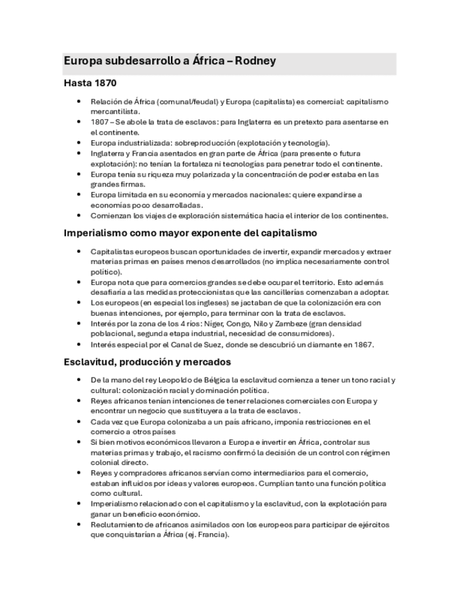 Resumen de los siguientes textos: - Rodney, Walter. “La llegada del imperialismo y el colonialismo” - Bertaux, Pierre. “Conferencia de Berlín de 1884-1885” - Cantón Álvarez, José Antonio. “Opio y colonialismo" - Shmite, Stella Maris.