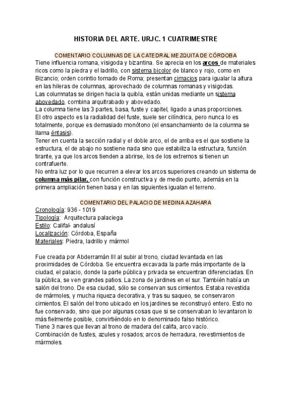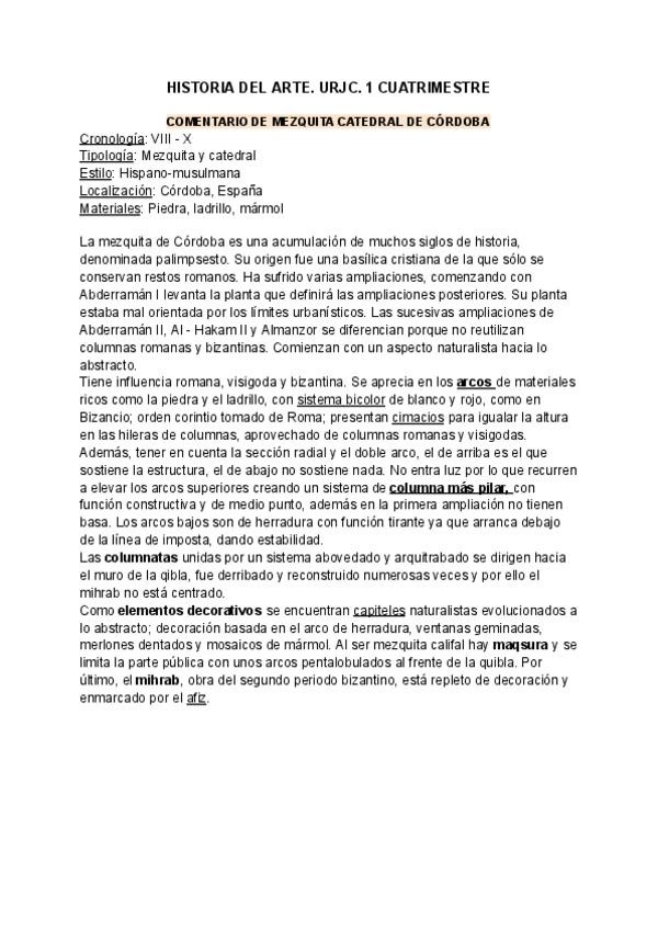 He publicado nuevos apuntes de 1º Historia del Arte: Comentarios. Tema 6. Arte hispanomusulmán