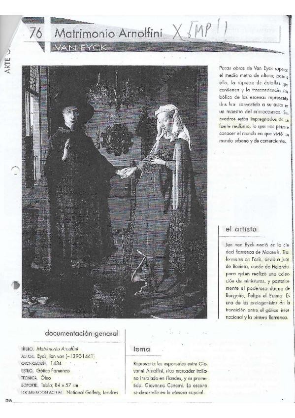 Comentario de lámina del Matrimonio Arnolfini con todos los puntos a tener en cuenta para el examen.