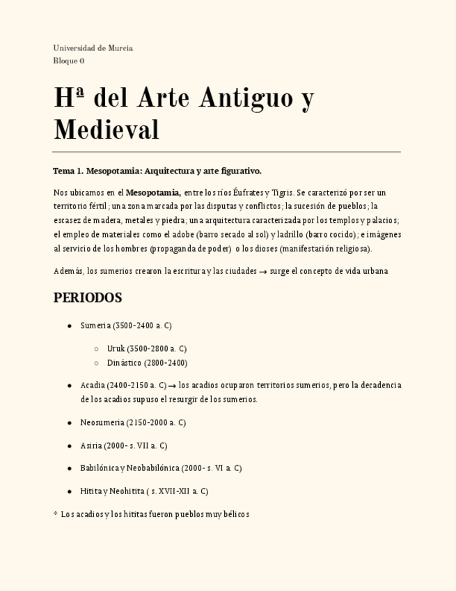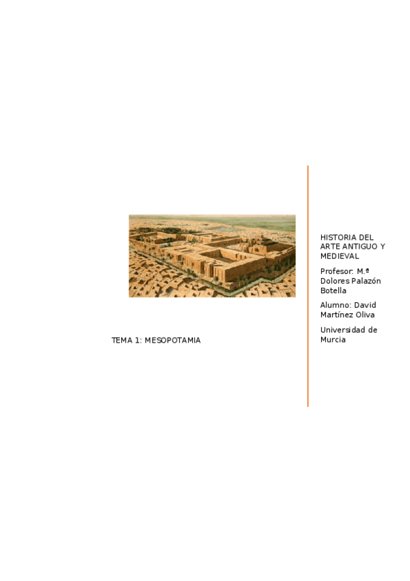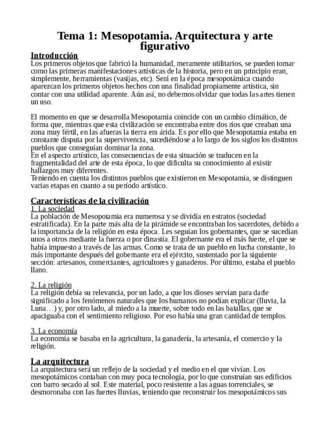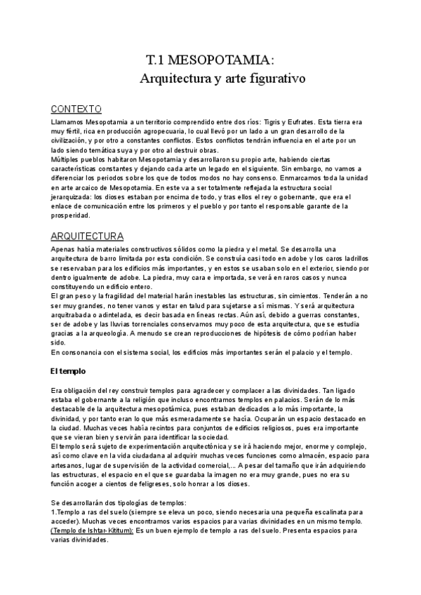 Tema 1 de Mesopotamia. El documento es extenso debido al gran número de imágenes que tiene para que así a la hora de estudiar también sea un poco visual y no tanto memorizar. Están todos los comentarios con su imagen respectiva.