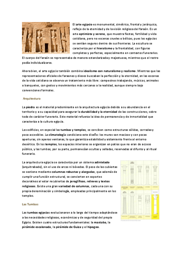 Tema 2 Egipto, completo y con imágenes para entender las obras con mayor precisión.
