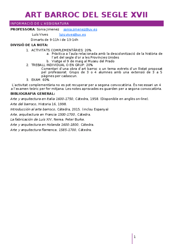 Història de l'Art Barroc - Gr. A