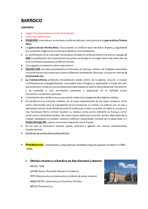 Apuntes examen final Historia del Arte II: - Barroco - Gian Lorenzo Bernini - Francesco Borromini - Caravaggio - Real Monasterio de San Lorenzo del Escorial - Plazas de Madrid - Velázquez - Arquitectura religiosa s.XVII - Arquitectura civil s.XVIII - Arq