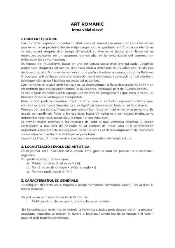 Es un resumen extenso para estudiar para la PAU de Andalucía. Es la parte 1 del arte románico.