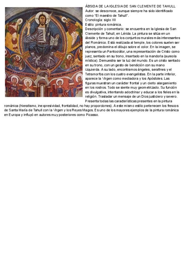 Comentario de dos obras románicas: El Pórtico de la Gloria de la Catedral de Santiago de Compostela y las pinturas del ábside de San Clemente de Tahull