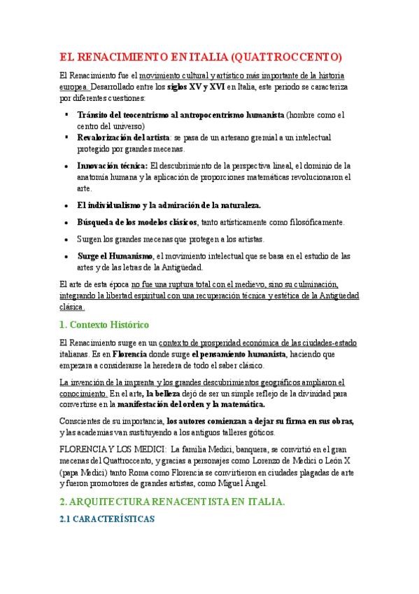 RESUMEN DEL RENACIMIENTO ITALIANO Y ESPAÑOL + VOCABULARIO IMPORTANTE DEL RENACIMIENTO ITALIANO