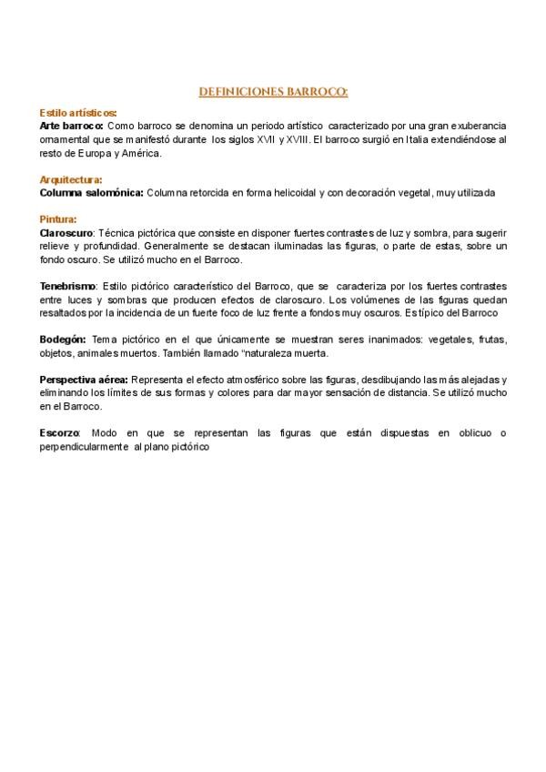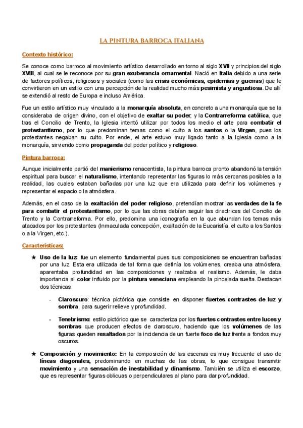 Apuntes arte barroco - Historia del arte