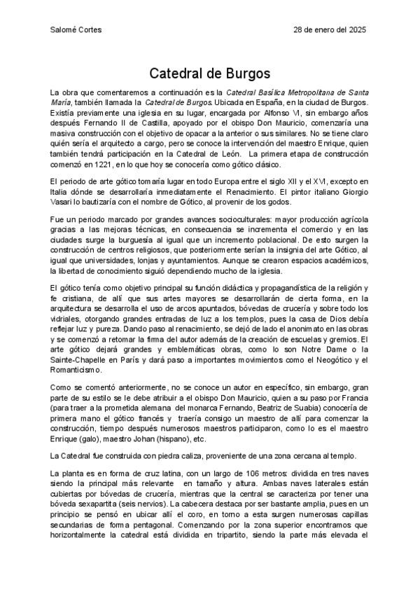Comentario de texto tipo PAU de la Catedral de Burgos, Tema: Gótico