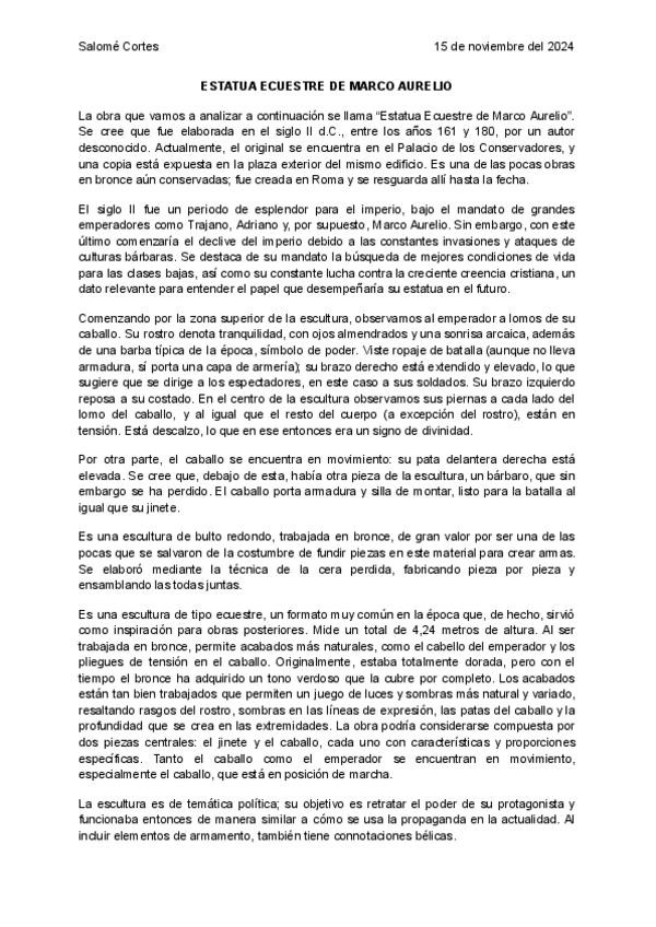 Comentario de texto tipo PAU, de la escultura "Retrato ecuestre de Marco Aurelio", Tema: Roma