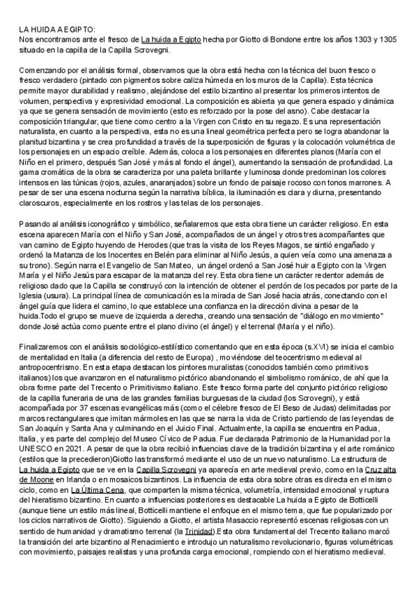 Comentario pictórico resuelto de La huida a Egipto en la Capilla Scrovegni en Padua de Giotto di Bondone para exámenes de 2 de bachillerato de historia del arte o PAU