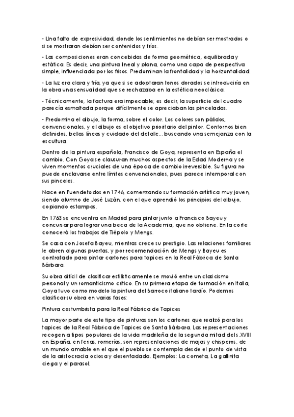 Resumen de los temas de historia del arte con la siguientes estructura: 1) Contexto histórico 2) Características 3) Obras y autores 4) Conclusión