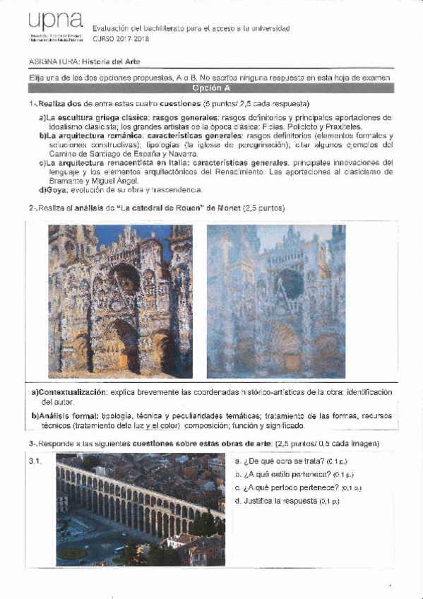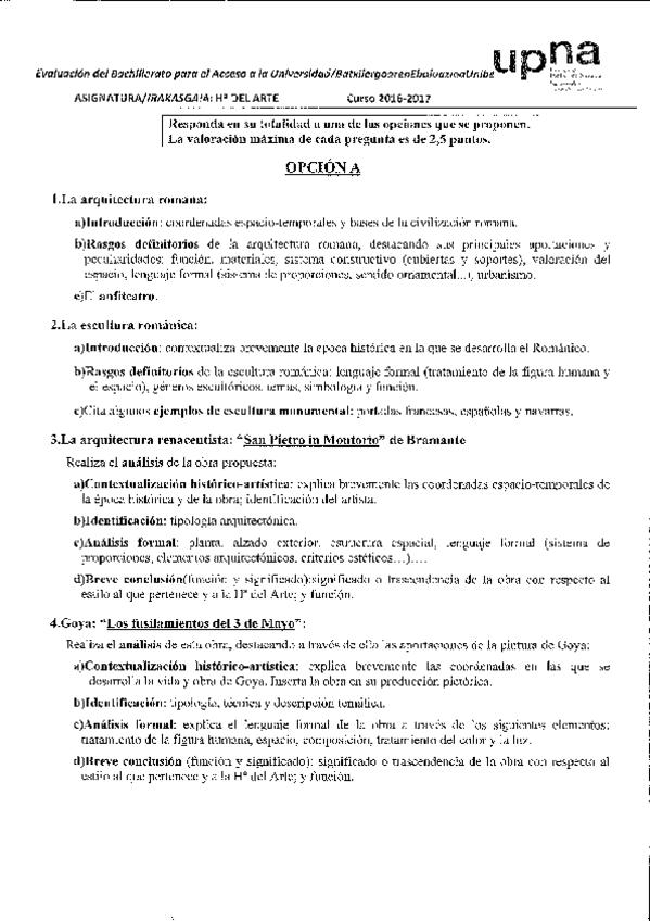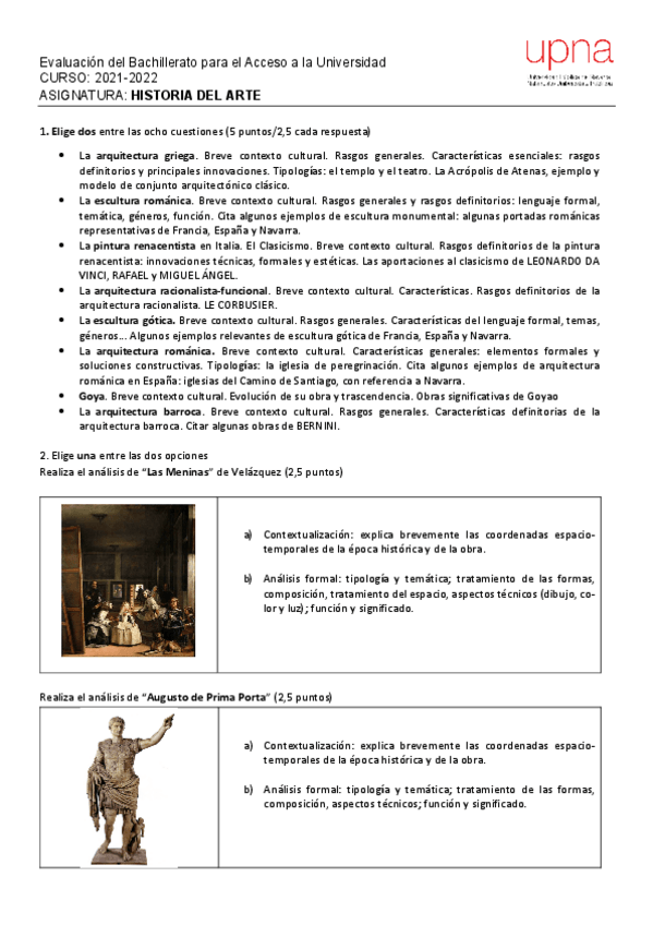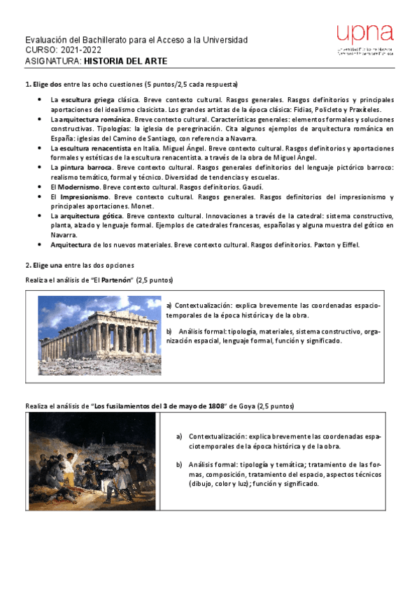 Exámenes Historia del Arte EvAU Navarra 2022