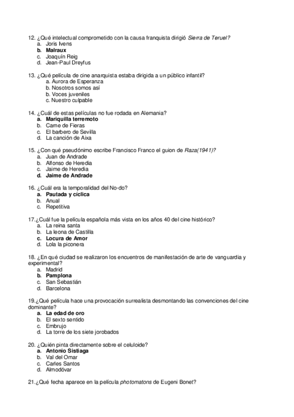 He publicado nuevos examenes de 3º Historia del Cine Español: Examen de historia.pdf