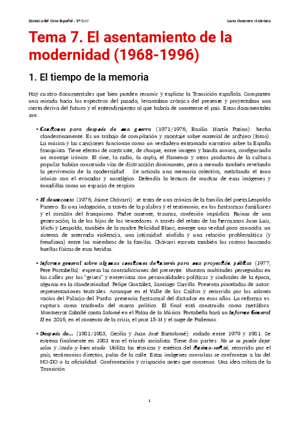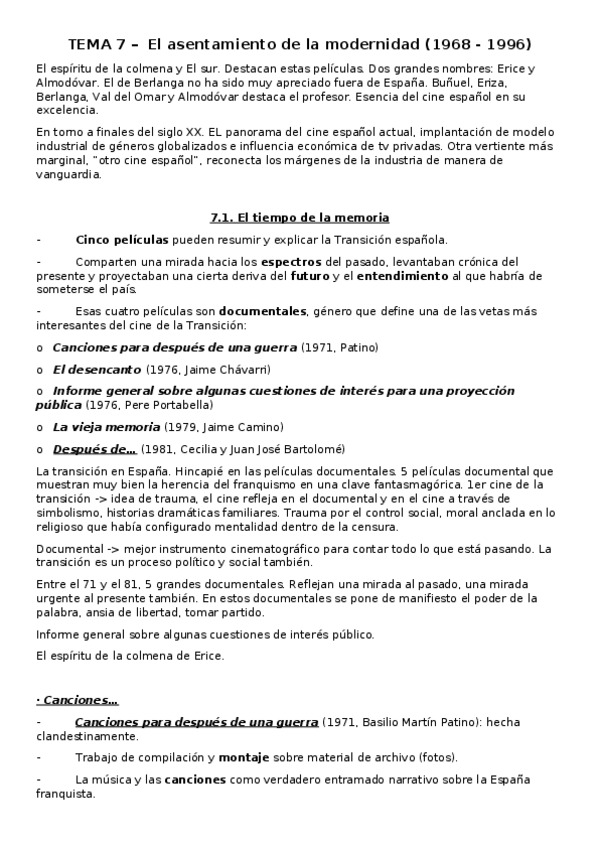 He publicado nuevos apuntes de 3º Historia del Cine Español: Tema 7- Asentamiento de la modernidad (68-96).pdf