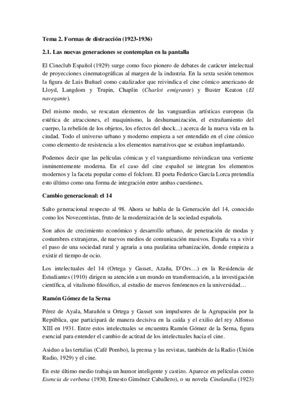He publicado nuevos apuntes de 3º Historia del Cine Español: TEMA 2. FORMAS DE DISTRACCIÓN (1923-1936).docx