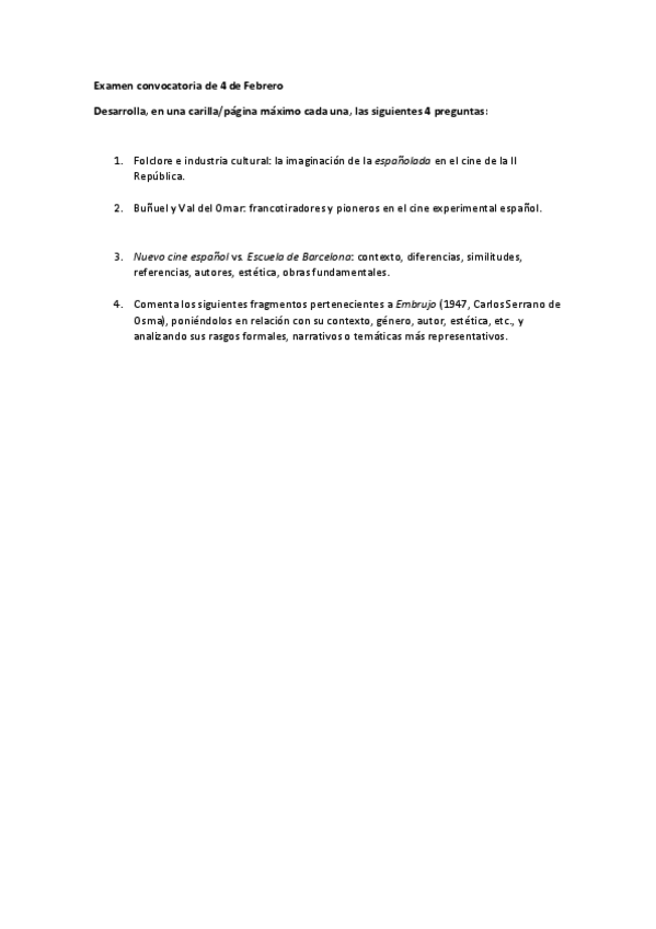 He publicado nuevos examenes de 3º Historia del Cine Español: Preguntas Historia del cine español - Primer cuatrimestre.pdf