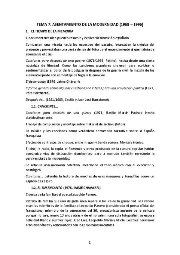 He publicado nuevos apuntes de 3º Historia del Cine Español: Tema 7- Asentamiento de la modernidad (68-96).pdf