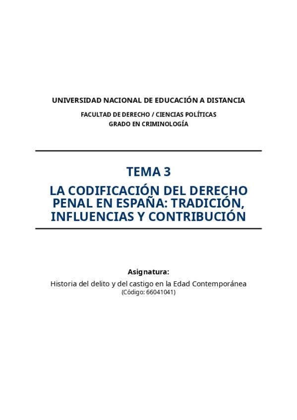 He publicado nuevos apuntes de 1º HISTORIA DEL DELITO Y DEL CASTIGO EN LA EDAD CONTEMPORANEA: TEMA-3-CODIFICACION-PENAL-ESPANOLA-GUIA-SUPER-UTIL-EXAMEN.pdf