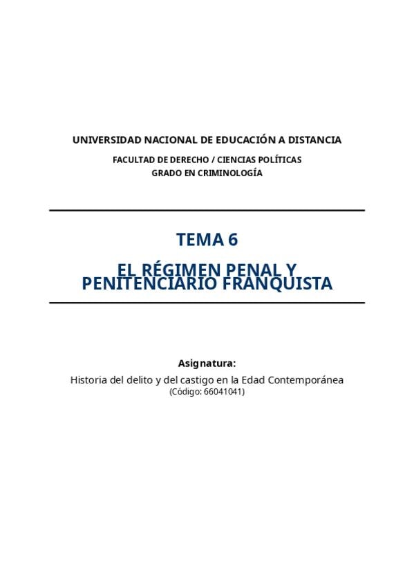 He publicado nuevos apuntes de 1º HISTORIA DEL DELITO Y DEL CASTIGO EN LA EDAD CONTEMPORANEA: TEMA-6-REGIMEN-PENAL-FRANQUISTA-GUIA-SUPER-UTIL-EXAMEN.pdf
