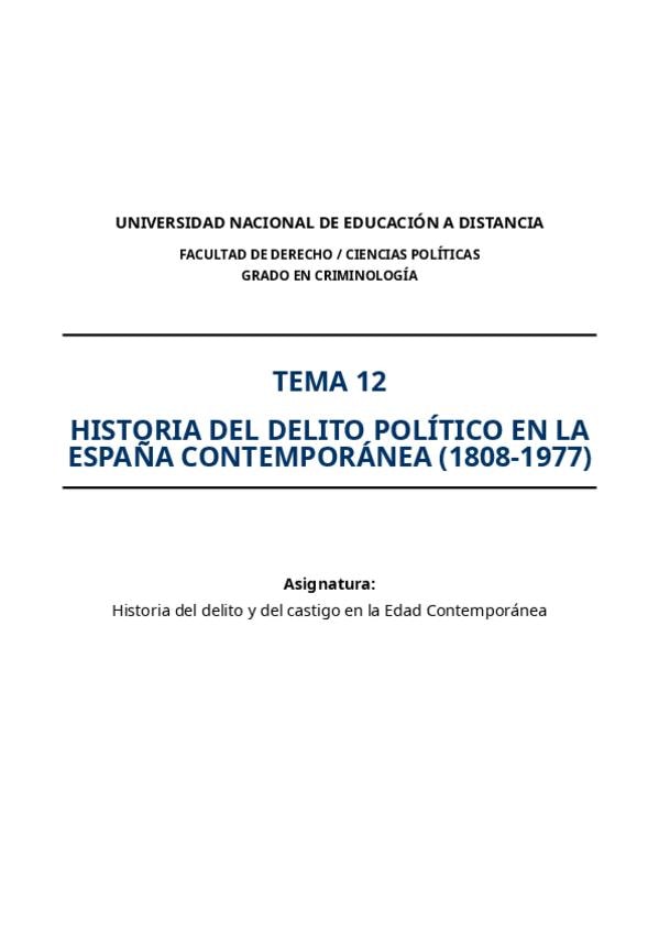 He publicado nuevos apuntes de 1º HISTORIA DEL DELITO Y DEL CASTIGO EN LA EDAD CONTEMPORANEA: TEMA-12-HISTORIA-DEL-DELITO-POLITICO-GUIA-SUPER-UTIL-EXAMEN.pdf