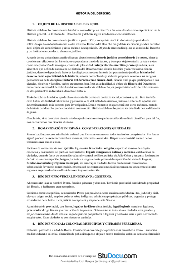 Resúmenes Historia del Derecho, impartido por el profesor Miguel. Apuntes tomados acudiendo a clase cada día. Completos al 100%.
