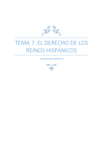 He publicado nuevos apuntes de 1º Historia del Derecho: TEMA 7. EL DERECHO DE LOS REINOS HISPÁNICOS (MUY COMPLETO).pdf