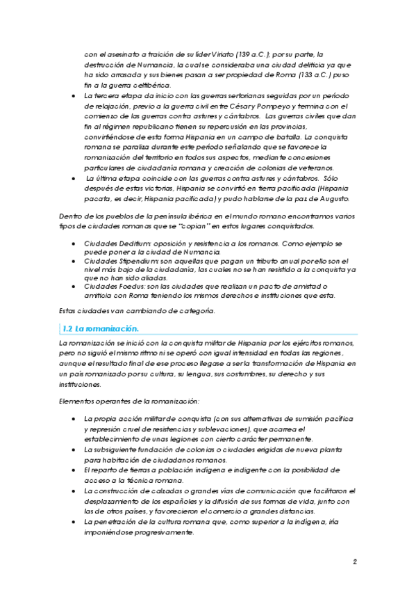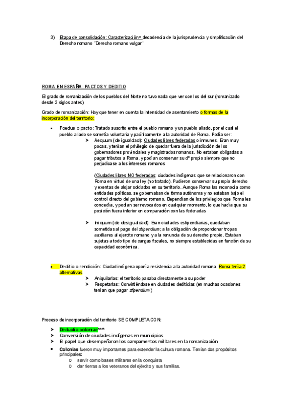 Apuntes de clase de Historia del Derecho Español sobre la Romanizacion de los pueblos conquistados, tanto juridica como culturalmente