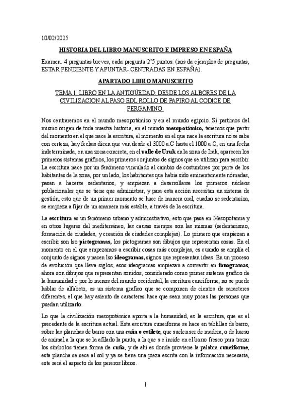 He publicado nuevos apuntes de 1º Historia del Libro Manuscrito e Impreso en España: Temario
