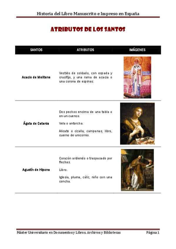 Ayuda a identificar a los santos en las ilustraciones de las láminas.