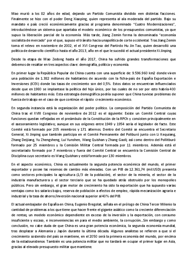 He publicado nuevos apuntes de 1º Historia del Mundo Actual: 9-China-Actualun-esquema-de-cuestiones-relevantes.pdf