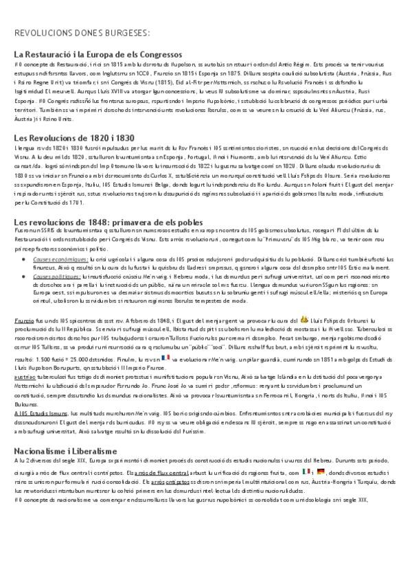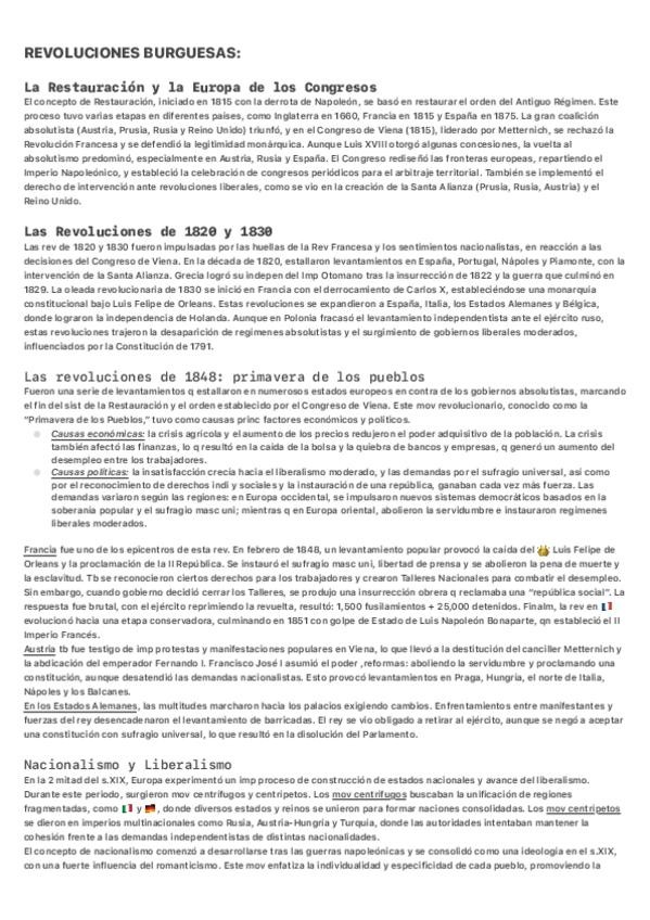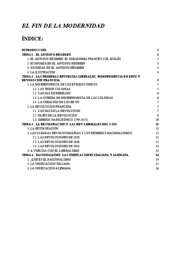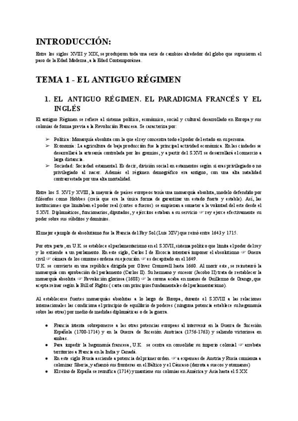 Tema 1: El antiguo régimen + Tema 2: Las primeras revueltas liberales (índex. EEUU y Francia) + Tema 3: La restauración y las revoluciones liberales del S.XIX + Tema 4: Nacionalismo (unificaciones alemana e italiana)