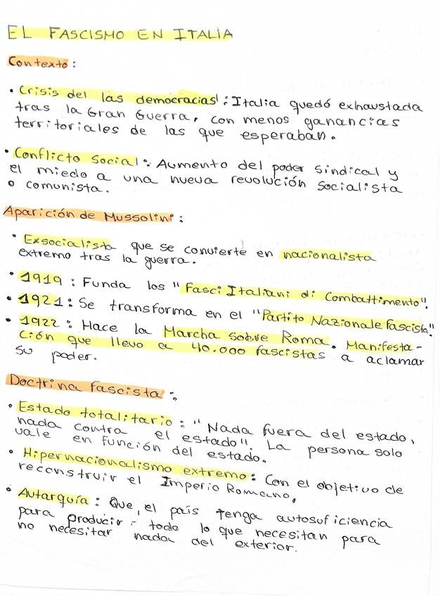 Holaa, apuntes de Historia + datos extra para sorprender al profe (Democracias y dictaduras en la Europa de Entreguerras, Ideología y bases sociales del fascismo, Itália fascista, La Alemania Nazi )