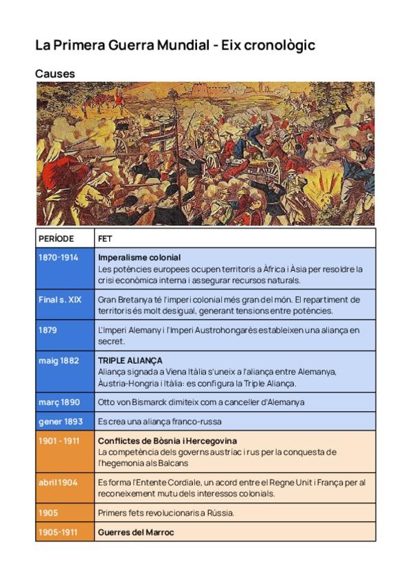 Eix cronològic Història del Mòn Contemporani - Primera Guerra Mundial Causes, fases i conseqüències
