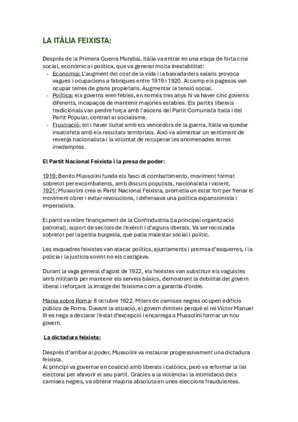 Apunts història del món contemporani s. XX resum del feixisme i nazisme en català