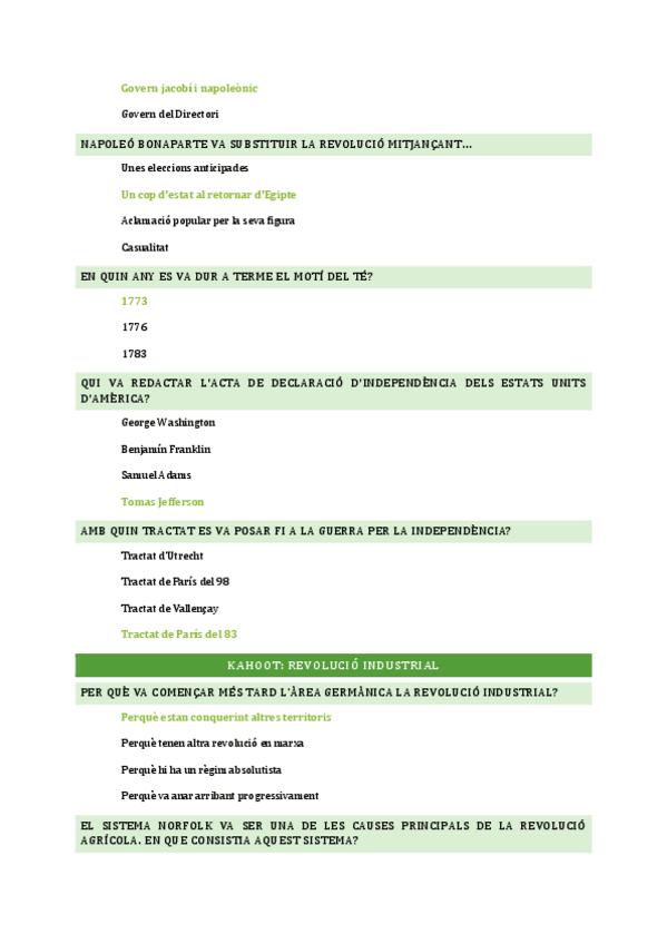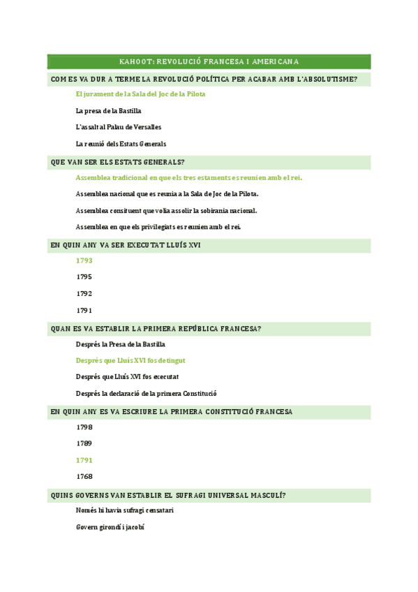 Preguntes resoltes per utilitzar en el kahoot de la revolució francesa i americana, de la revolució industrial i del moviment obrer
