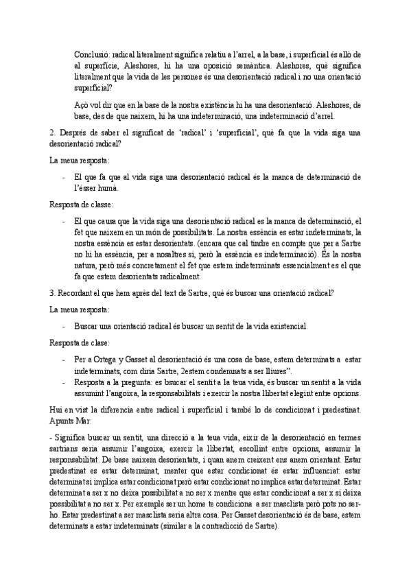 Hola, a continuació us deixe els apunts que he pres en les classes d'Història del Pensament que hem dedicat a contestar a les preguntes del tetx de Sartre. Per una banda, trobareu les meues respostes prèvies a la classe, i per altra, elsapunstq ue he pr