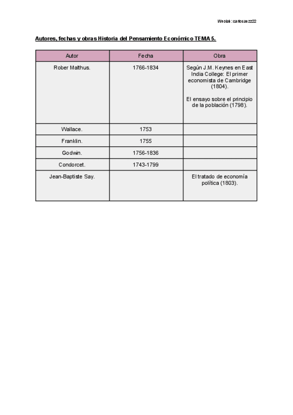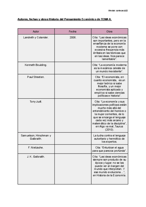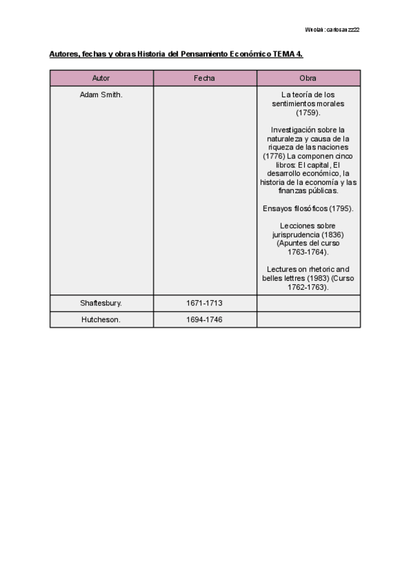 He publicado nuevos otros de 4º Historia del Pensamiento Económico: Autores, fechas y obras de cada tema de la asignatura.