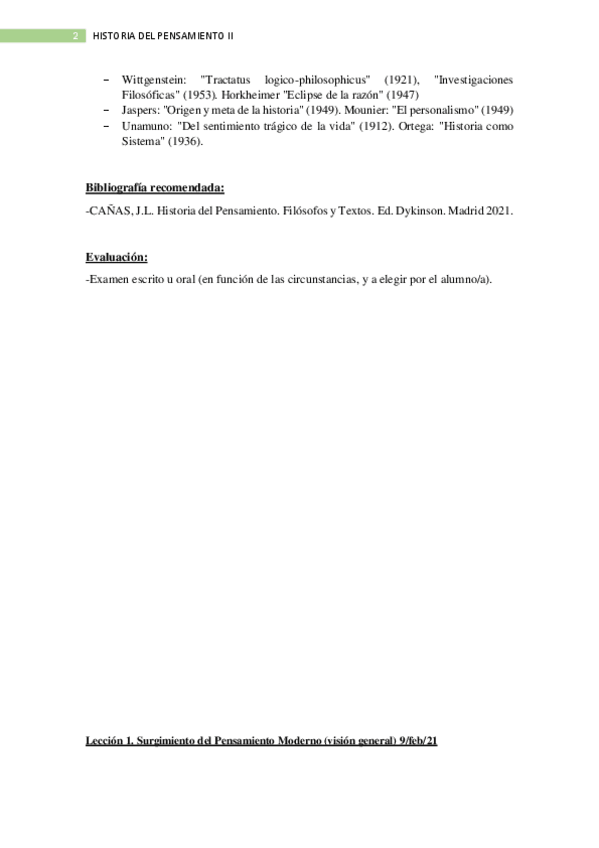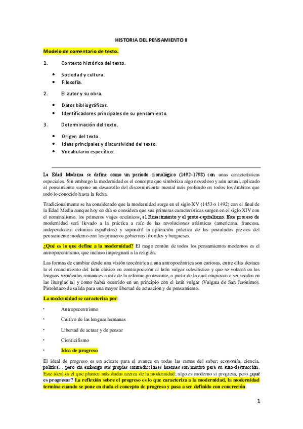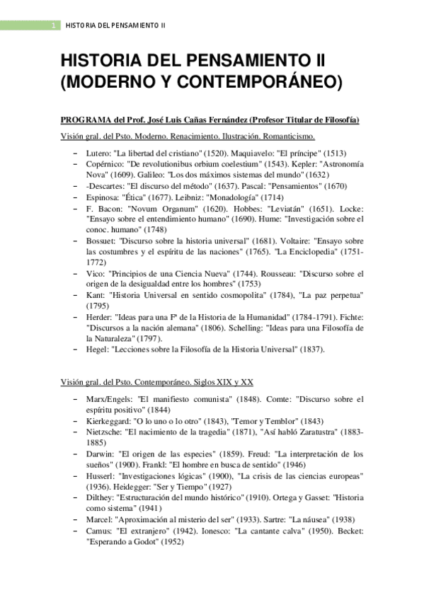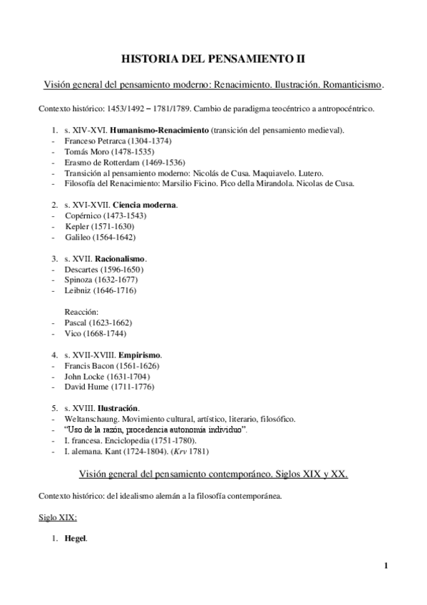 Historia del Pensamiento II (Moderno y Contemporáneo)