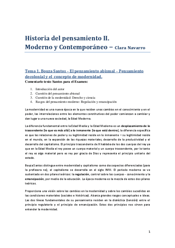 apuntes Historia del Pensamiento II , Clara Navarro Ruiz