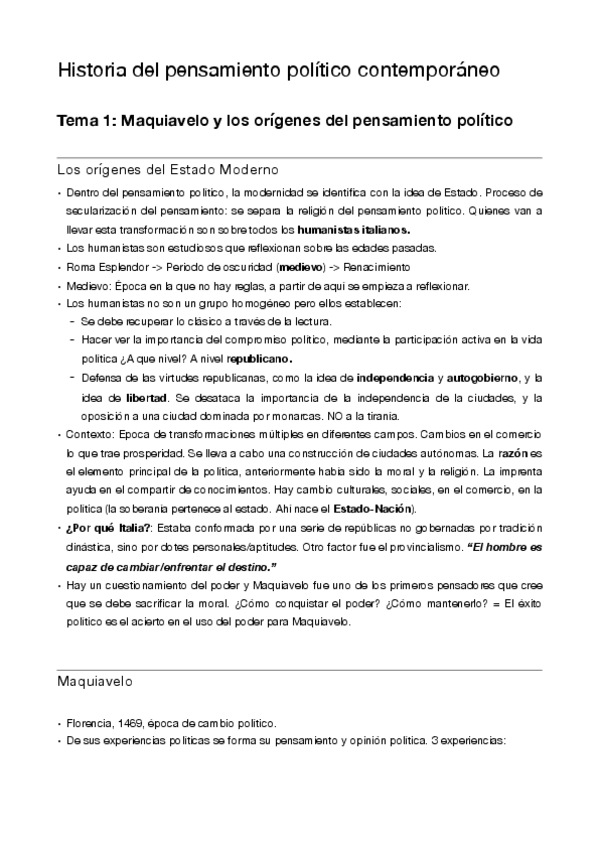 Historia del Pensamiento Político