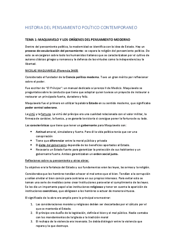 APUNTES Historia del Pensamiento Político Contemporáneo