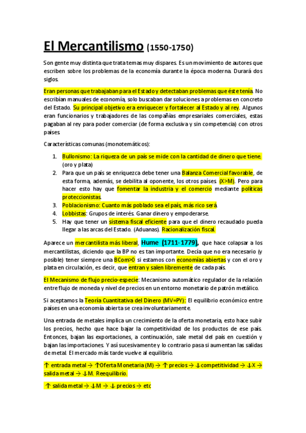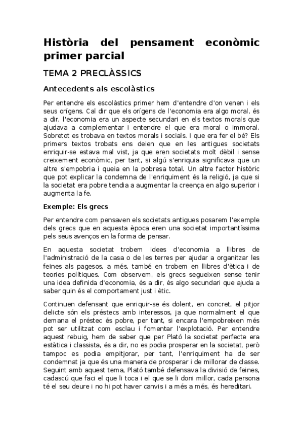 Apuntes 1r Parcial Historia del Pensamiento Económico